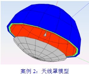 【案例2】天线罩计算 天线罩下方有一副单体反射面天线,工作频率为20GHz,使用快速多级方法与体积分方程法计算天线在天线罩影响下的辐射方向性图,得到加天线罩和不加天线罩的辐射方向性图,如图所示。