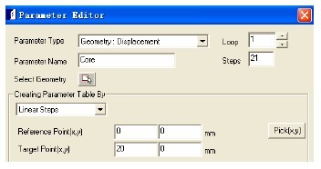 将磁芯的位置设为变量,给此变量赋值,使磁芯沿着轴线从中心位置向右移 动。如下图所示变量设置: