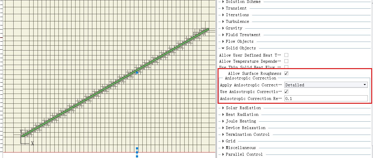 Ø 增加倾斜PCB板的计算精度 PCB为典型的各向异性导热性的物体,当其与坐标轴平行或垂直时,计算相对容易,当其倾斜时,不容易处理。新版本软件提供了Anisotropic Correction功能,可以增加此类模型的计算精度。 Ø 新增实体表面粗糙度功能