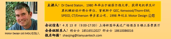 | 主要议题9:20-12:00致辞及Motor Design Ltd公司介绍Motor-CAD和Motor-LAB快速高效分析电机的电磁和热性能· Motor-CAD EMag模块电机电磁特性计算· Motor-CAD Therm模块电机热特性计算· Motor-LAB模块电机效率Map图和循环工况分析工具Motor-CAD 和Motor-LAB实际案例的现场操作演示· 日产凌风电动汽车动力电机的电磁和热特性分析13:30-17:00Motor-CAD 和Motor-LAB的实际案例分享电机设计和优化案例:·工业电机 · 伺服电机 · 绿色能源发电机 · 家用电器电机 · 汽车辅助电机·电动汽车驱动电机 ·叉车驱动电机 ·电动自行车驱动电机 · E级方程式赛车高性能·驱动电机 ·油气采掘钻探电机 ·宇航电机 ·同步发电机提问与回答 |