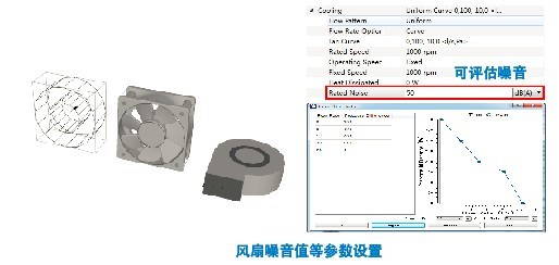6SigmaET可按照设置的风扇或风机等振动发声设备的噪音值预测整机噪音值。