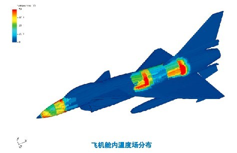 飞机舱内电子设备主要集中在机头以及舱中部,对于舱内设备散热主要采用飞机进气道引气冷却舱内设备。通过导入飞机外型,再用软件自带模块进行发热设备及相关冷却模块的添加,即可完成建模和飞机舱内热环境的计算分析。